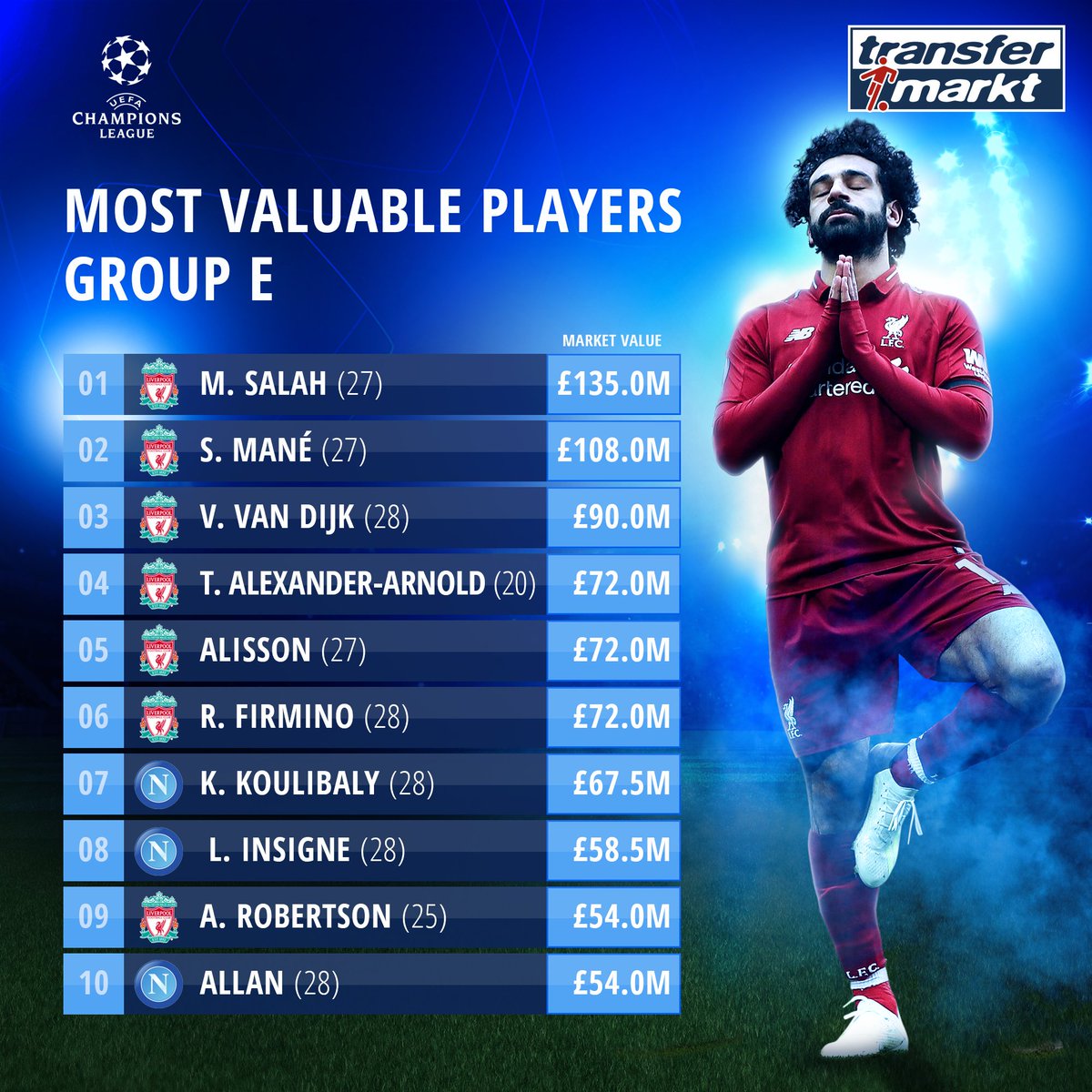 Transfermarkt Co Uk On Twitter Mohamed Salah On Top Of Group E All Championsleague Values Https T Co Kyzor7vocw Lfc Napoli